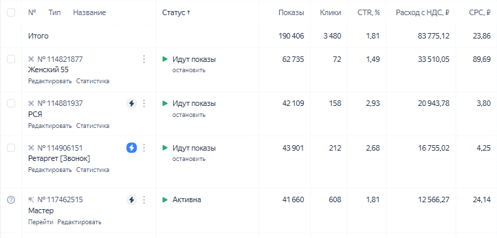 Автор кейсов сказал: 📈 Яндекс Директ — горячие лиды с высокой конверсией Для продвижения услуг по маникюру я запустил кампанию в Яндекс Директ, ориентируясь на пользователей с выраженным намерением записаться на услугу. Акцент сделан на поисковую рекламу и РСЯ, чтобы охватить как «горячий» трафик по запросам, так и «теплый» через тематические площадки.